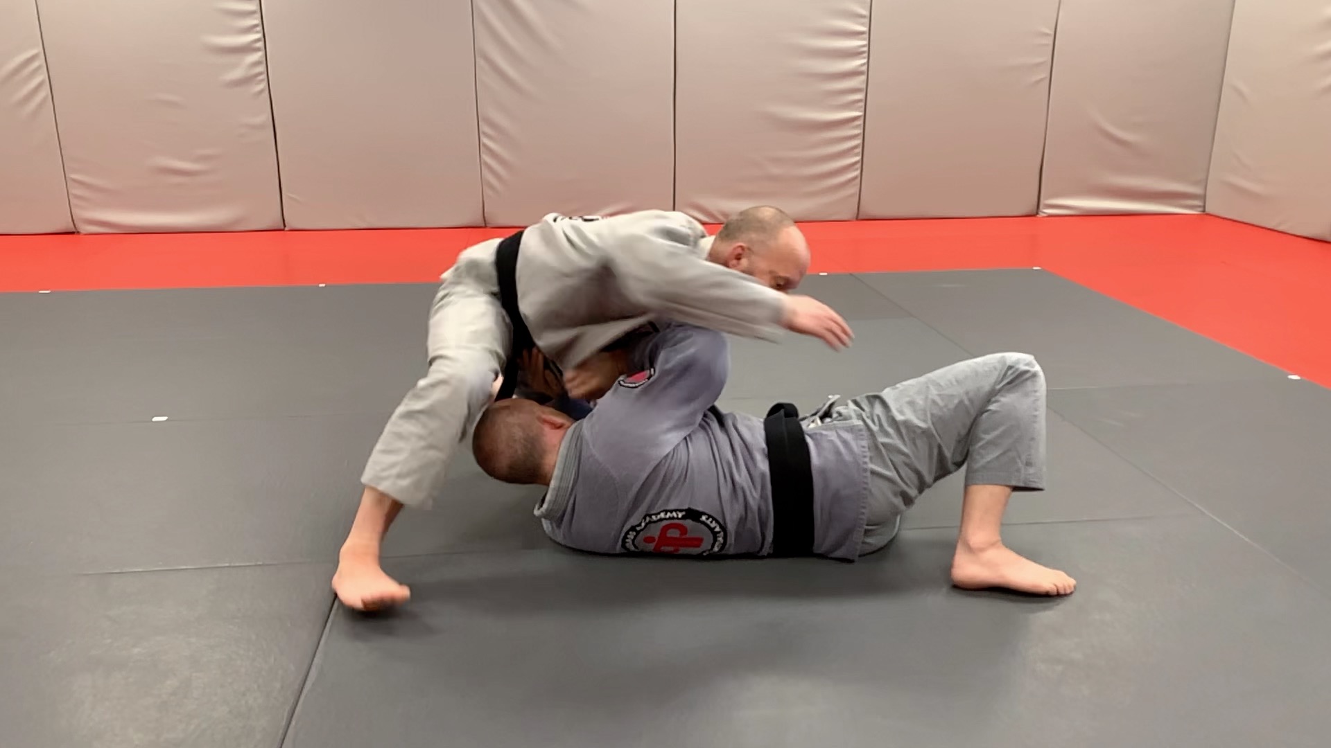 Key #2 is blocking the hips. For him to get his guard back he has to be able to move his hips back up underneath me. I could use my arm to block the hip or my knee to block the hip.